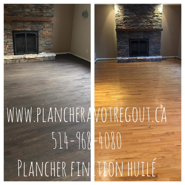 Voici un plancher huilé avant et près Finition qui demande un entretien régulier, c’est à dire remettre de l’huile aux 2-3 ans pour l’entretenir et de cette façon le faire durée très longtemps Idéal pour une maison qui a de gros chiens, les futures égratignures paraissent bcp moinsMais il faut utiliser le bon savon et ne pas oublié l’entretien !!